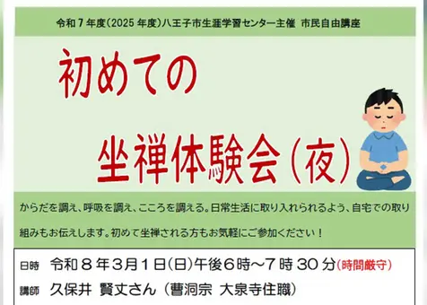 夜に心を整える。初めての坐禅体験会が八王子で開催