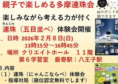 初心者大歓迎・参加費無料!親子で楽しめる『五目並べ体験会』が2/8に開催