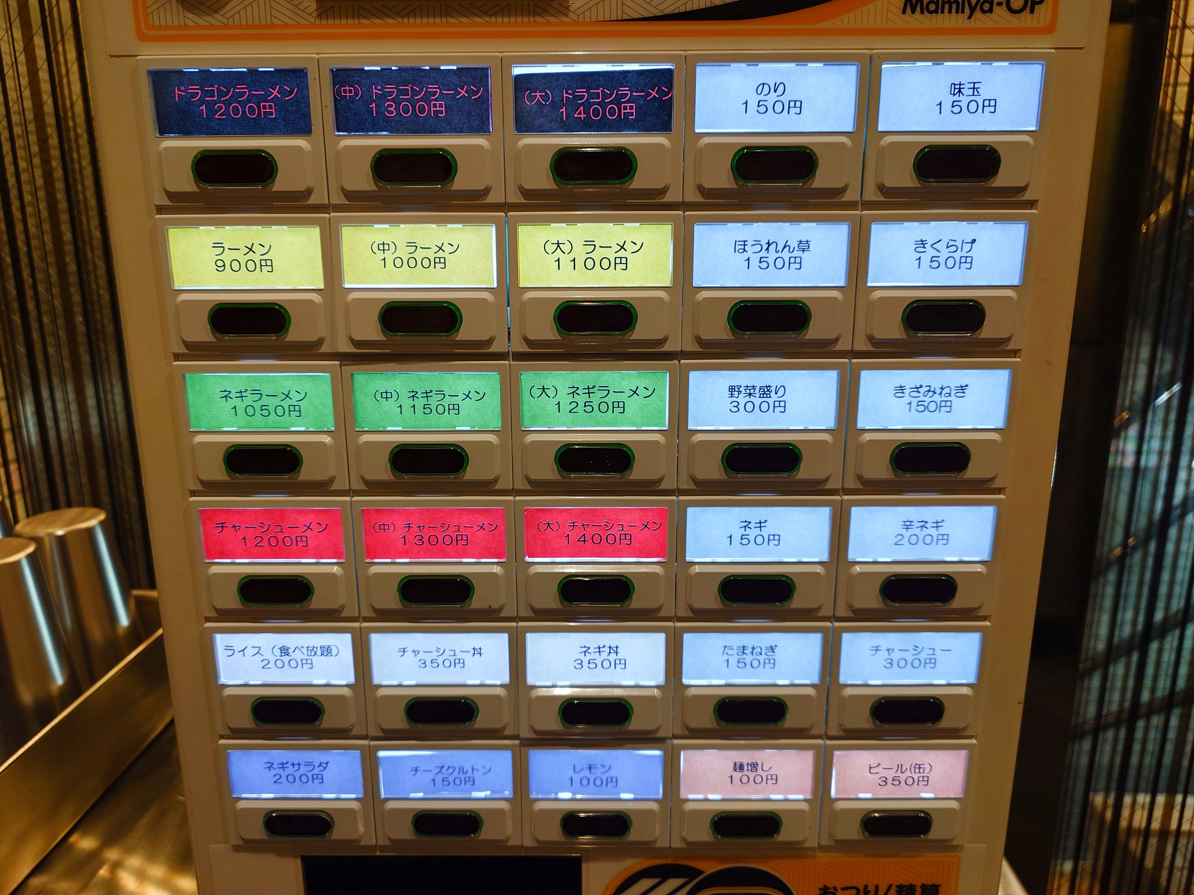 ラーメンのほか、多彩なトッピングが用意されています。特に『ドラゴンラーメン』という気になるメニューもラインナップされています。