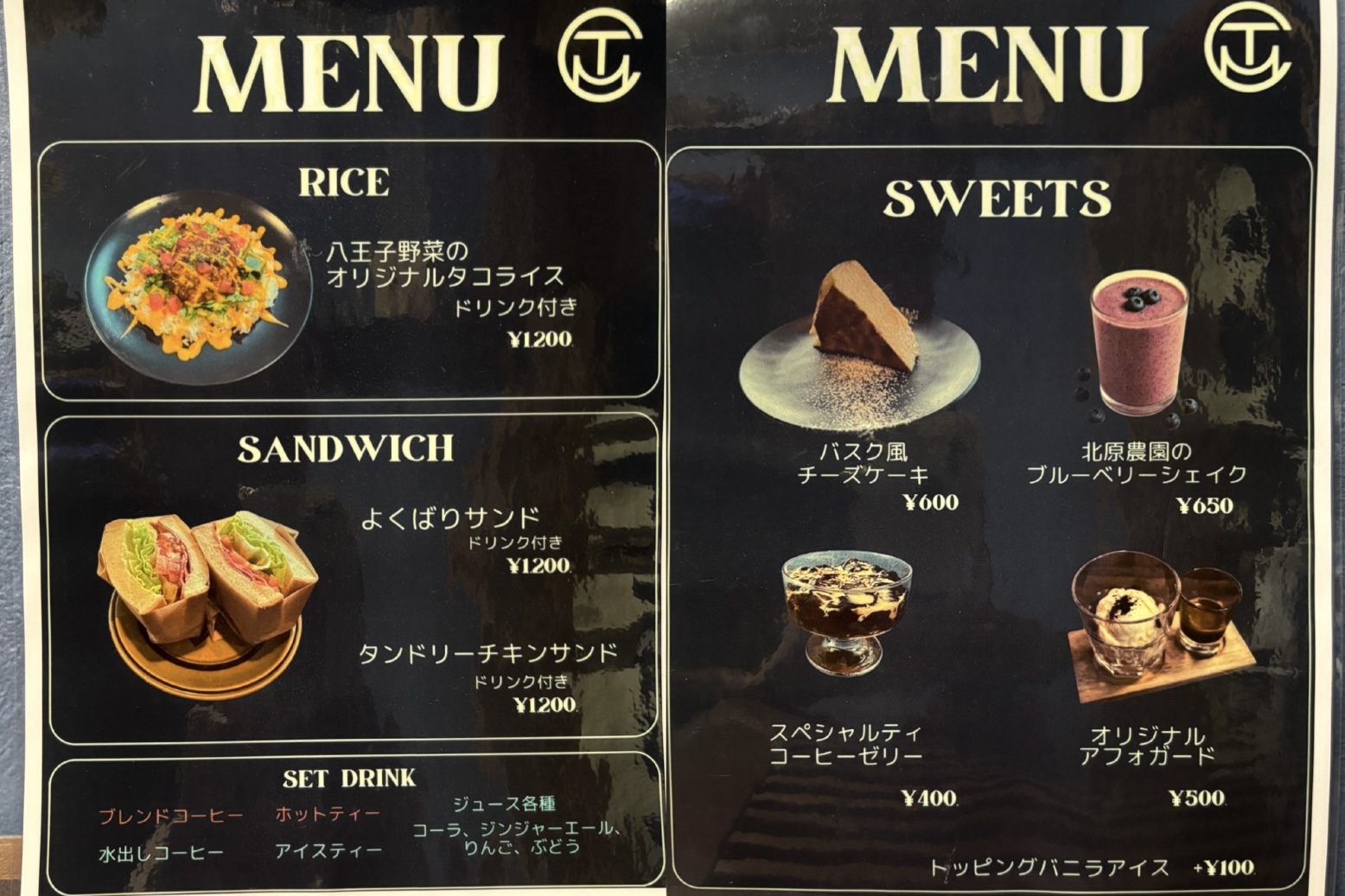 メニュー数は多く、間借りカフェと思えないほど!フードメニューはドリンクとセットなのがうれしいですね。