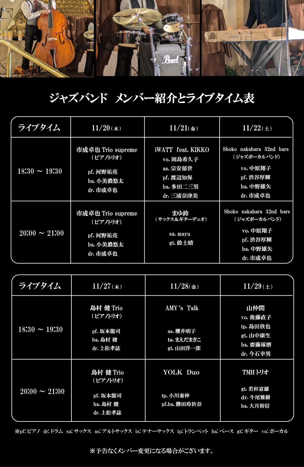 ジャズ演奏:1部 18:30~20:30 / 2部 20:00~21:00 - 会場