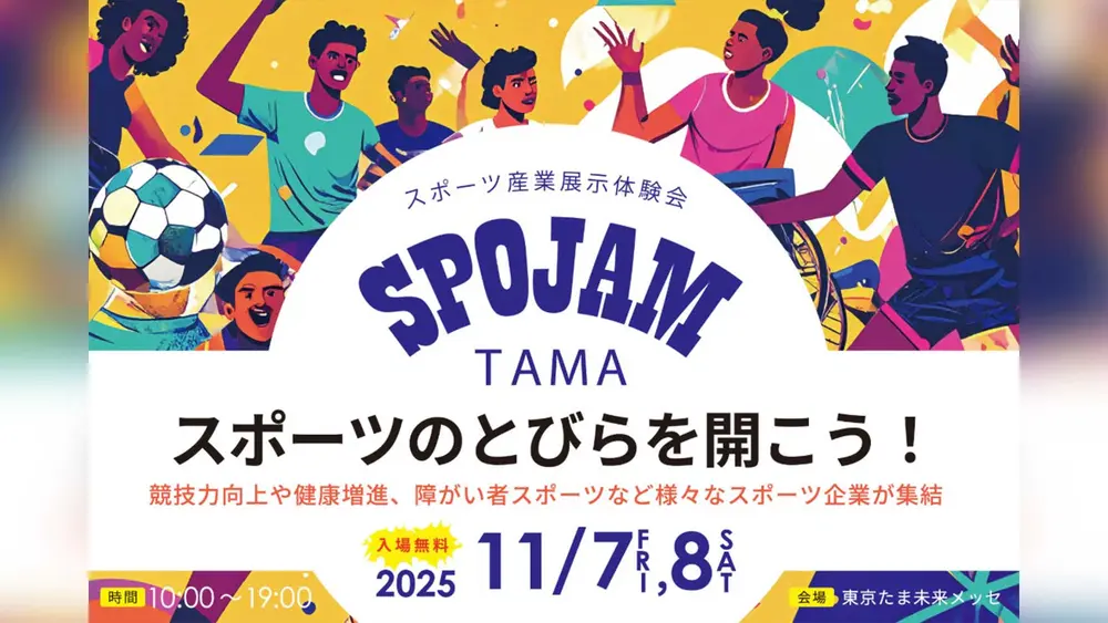 スポーツ産業の展示体験会『SPOJAM TAMA(スポジャムたま)』が、2025年11月7日(金)・8日(土)に東京たま未来メッセで開催されるようです!東京都が主催する同イベントでは、スポーツ企業や大学、プロチームが一堂に集まり、体験・展示・トークなど多彩な企画を通してスポーツの力を体感できますよ。入場は無料です!