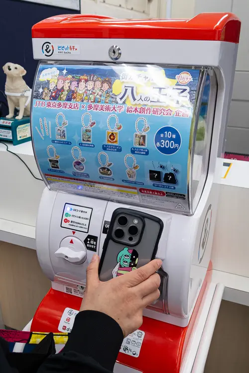 『JTB 八王子北口店』でガチャをしてきました!他にも、多摩美術大学八王子キャンパス、高尾山口観光案内所、JTBトラベルゲート立川など、多摩エリア10ヵ所に順次設置予定だそうです。お出かけついでに巡ってみるのも楽しそう!