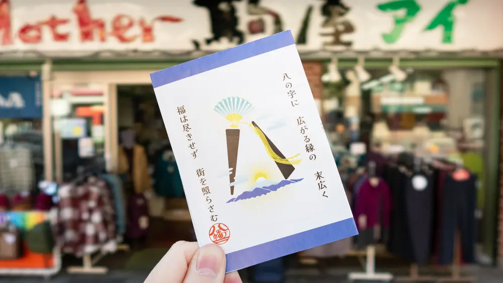 八幡商店街で『御朱印シールラリー』が開催中!期間は11/30まで、11:00〜17:00。台紙に描かれた8種の御朱印デザインに、番号と対応したシールを集めて貼るイベントです。全て揃えると先着200名に500円分の商品券を進呈!商店街を歩きながら気軽に参加できます。