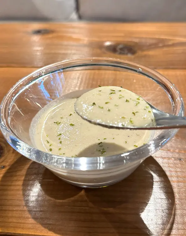 セットでついてくるポタージュも絶品。この日は、4種のきのこを使った“きのこ豆乳ポタージュ”。水分をしっかり飛ばして香りを引き出しています。季節素材を使うため、来店のたびに違う味が楽しめます。