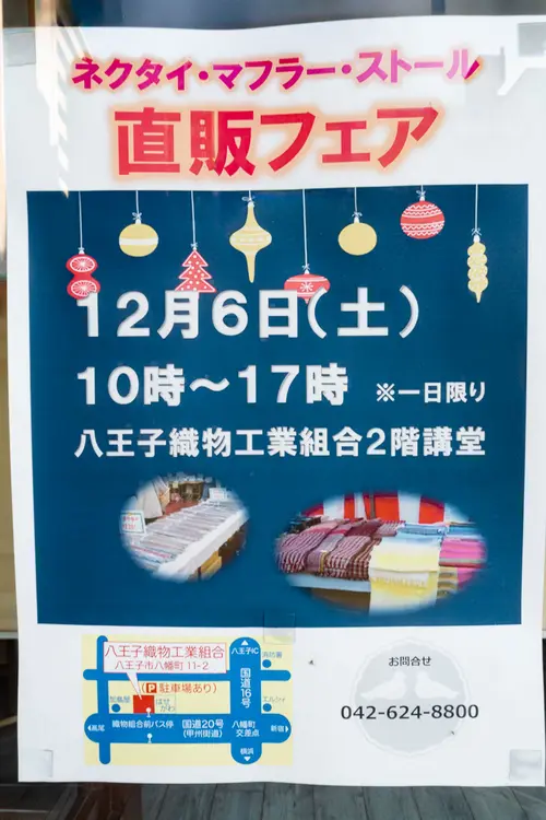 直販フェアが開催されるのは、2025年12月6日(土)。場所は八王子織物工業組合2階講堂です。