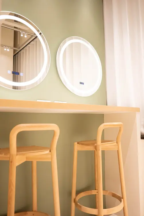 “女優ミラー”付きのパウダールーム。