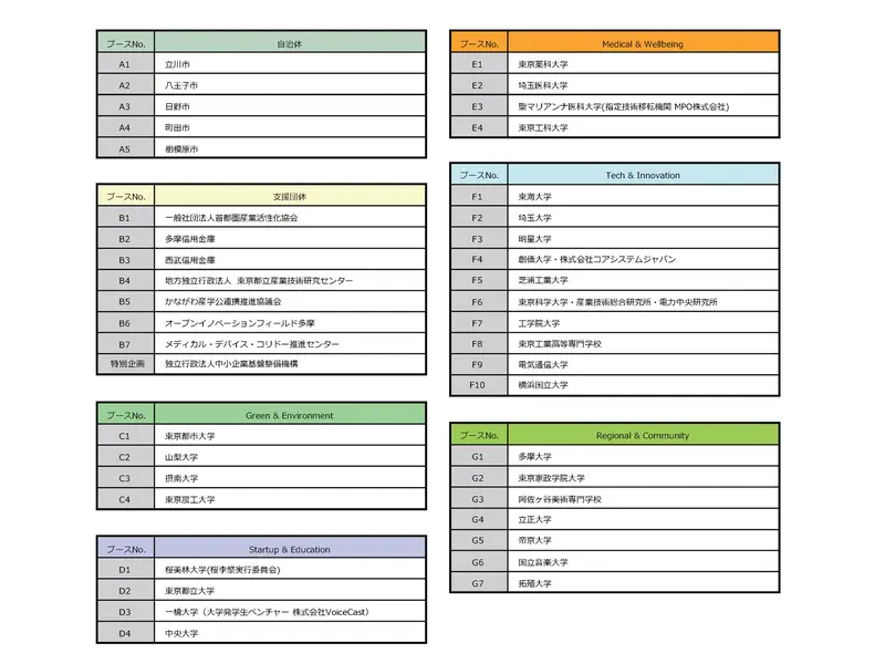 本イベントには、多摩地域の大学・研究機関に加え、埼玉・山梨・神奈川の国公立大学や専門機関も出展。研究シーズから社会実装、産学連携の実例までを一度に知ることができます。