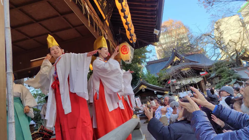 そして、彼女たちの投げる餅をつかむ者、握手を乞う者、写真をパチパチ撮る者、一緒に写真を撮る者……まるでアイドルの追っかけのような男性たちもたくさんいます。