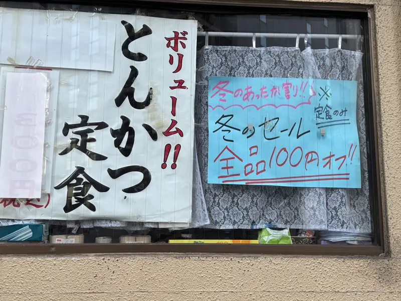 店頭に貼り出されていたのは「定食のみ 全品100円オフ」という、思わず二度見してしまう内容。