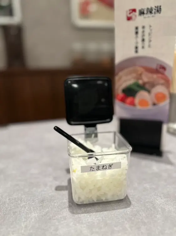 八王子限定で、卓上に「刻みタマネギ」の無料トッピングが置いてあります!