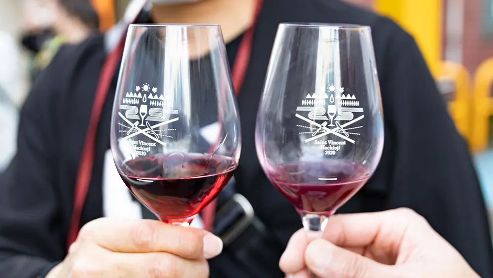 参加者はオリジナルワイングラスを手に、八王子の飲食店だけでなく、子安神社・八幡八雲神社・桑都テラスなど歴史を感じられるスポットも巡りながら、ワインと料理のペアリングを楽しむことができます。