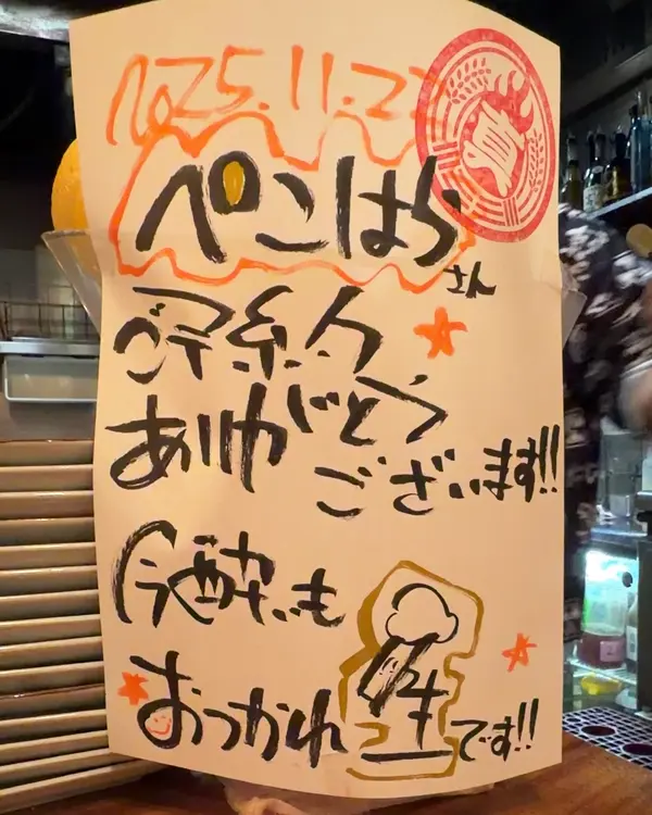 一階のカウンター席に通されると、席には僕の名前が手書きされた紙が貼られていました。こういうサービスはお店の方が一人ひとりのお客さんを大事にしている証。とても嬉しいですね。